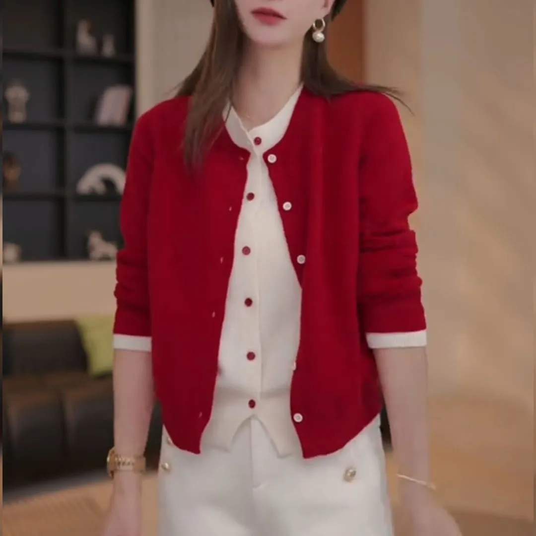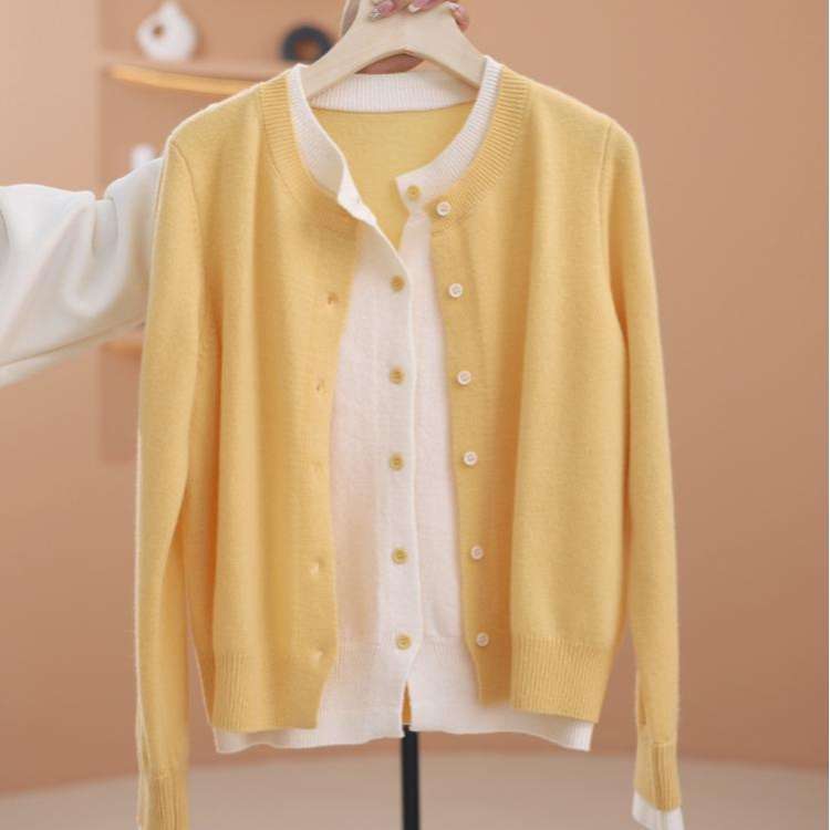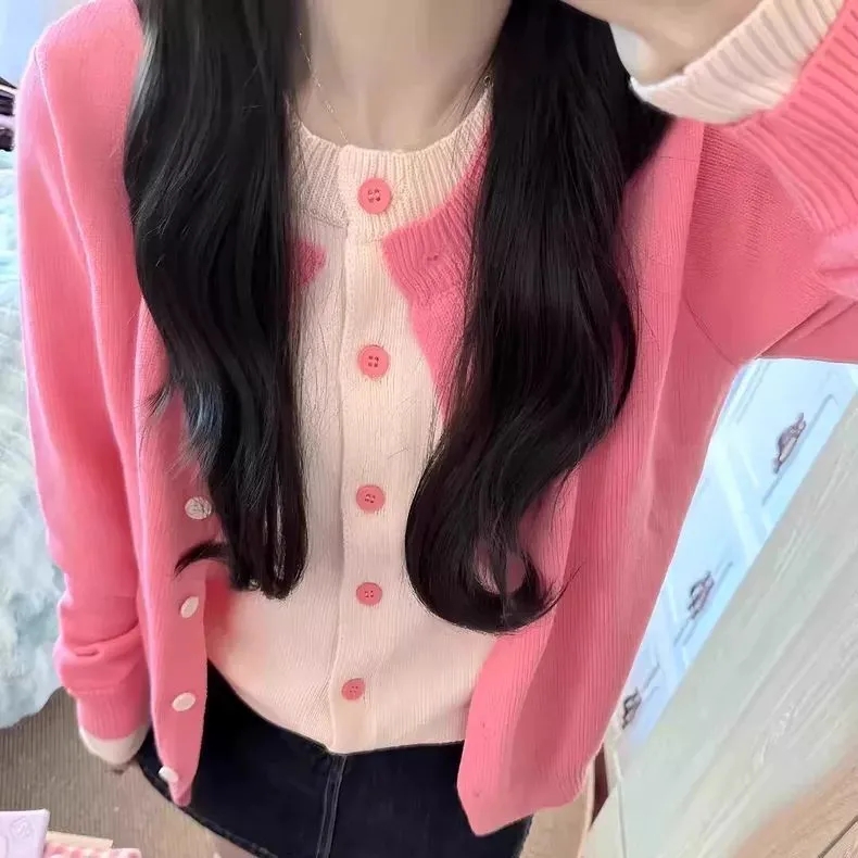 洋氣減齡百搭單排扣假兩件針織開衫女2025年秋季寬鬆顯瘦上衣